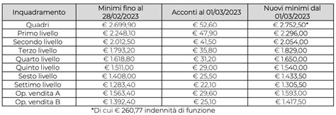 Tabella aumenti retributivi secondo ipotesi accordo rinnovo CCNL
