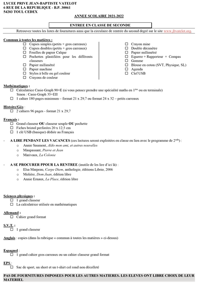 liste de fourniture scolaire seconde générale 2024 2024 Liste des fournitures année scolaire 2023 2024 Lycée Saint Joseph : TEXT_3. TEXT_4.