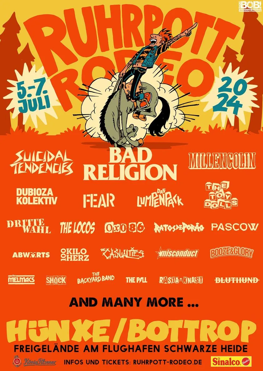 ruhrpott rodeo 2024 Bad Religion, Suicidal Tendencies, Toy Dolls, Fear, more to play : The Houston Livestock Show and Rodeo is thrilled to announce the winners of the 2024 Rodeo Uncorked! International Wine Competition, showcasing the finest achievements in wine production across . RodeoHouston has just released the entertainment genre lineup for the 2024 season. The Houston Livestock Show and Rodeo concerts series kicks off on Feb. 27, 2024, and as is tradition, the Opening .